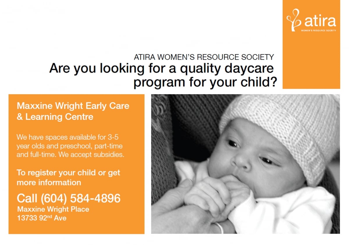 17. Atira operates two daycares, opening the Willow Early Care and Learning Centre in Richmond, BC in 2017. http://www.atira.bc.ca/daycare